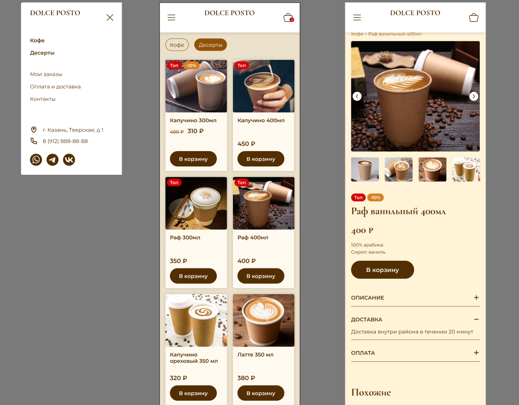 Интернет-магазин в telegram MiniApp для кофейни